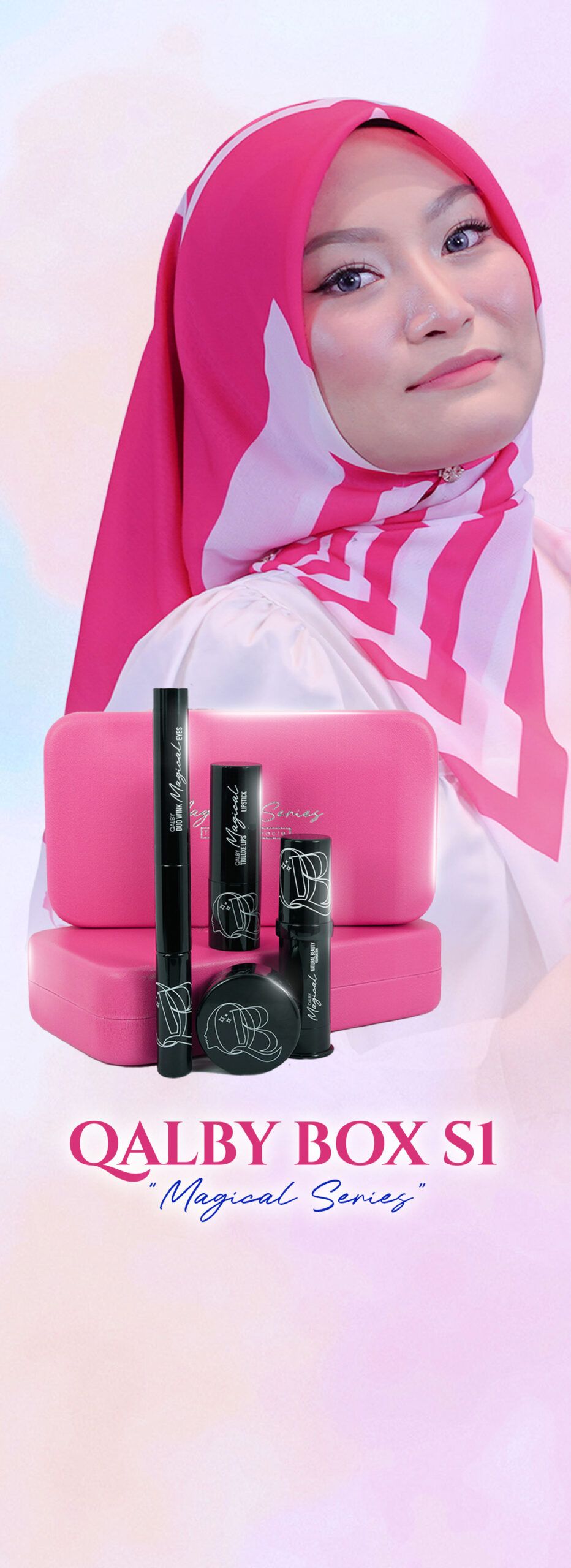 Qalby Premium Set – Semua yang anda perlukan untuk beauty & wellness dalam satu kotak mewah! Makeup, scarf, perfume & supplement, lengkap dalam satu set. Perfect untuk treat diri sendiri atau hadiahkan pada yang tersayang. Keterujaan, gaya & kesihatan, sempurna untuk setiap hari!